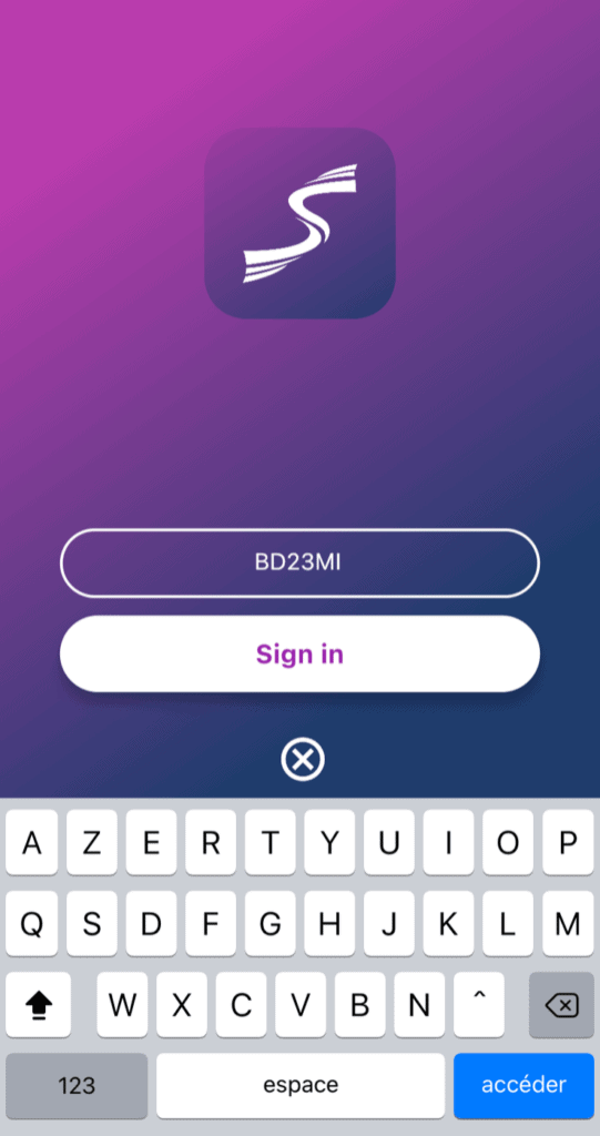 - Wenn Sie die App öffnen, schreiben Sie den Code, den Sie in Ihrer E-Mail mit der Zahlungsbestätigung erhalten haben, in das passende Feld "Event Password".